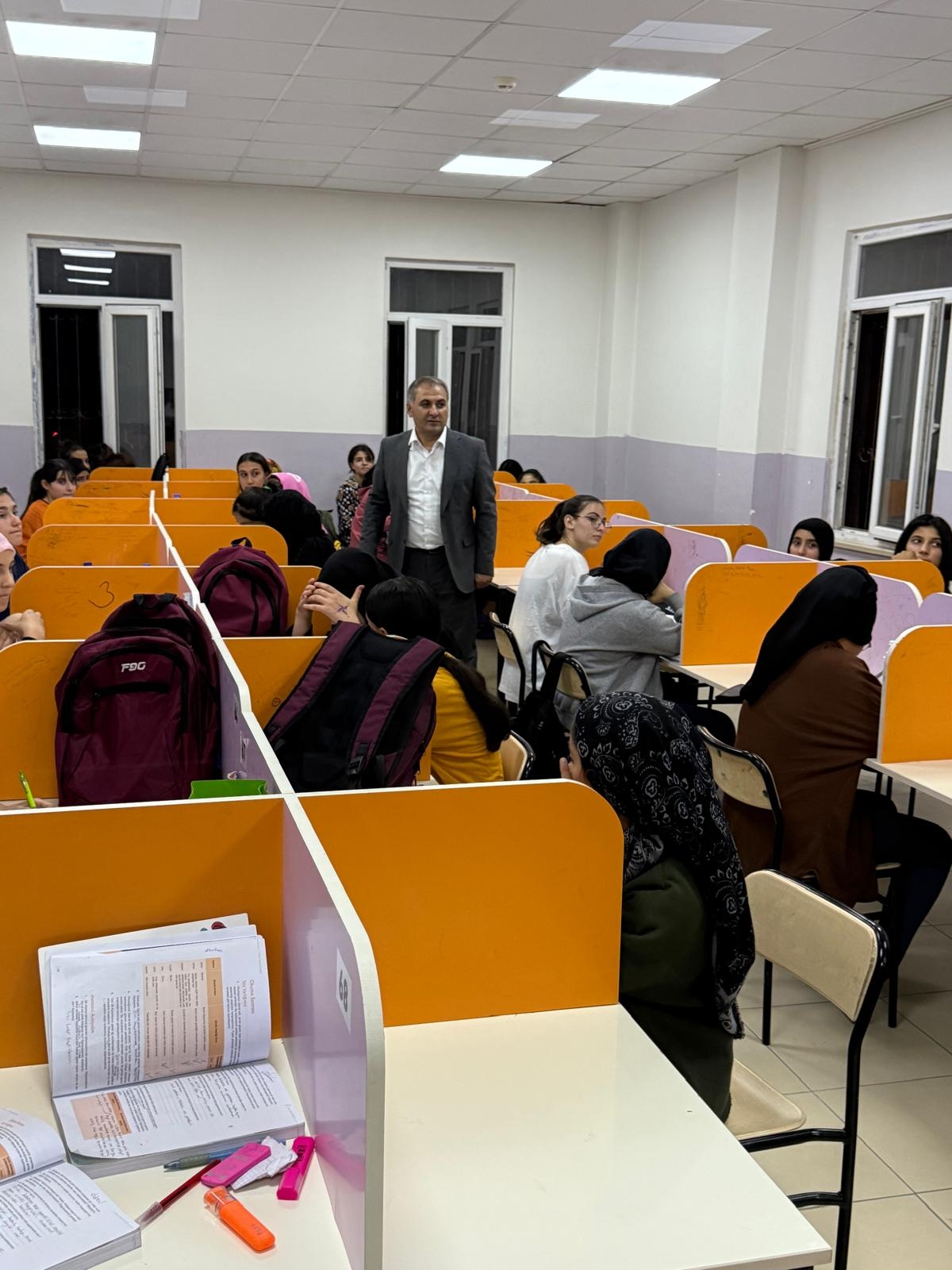 Geç saatlere kadar kalarak etüt salonlarını gezdi, öğrencilerin çalışma ortamlarını yakından inceledi.