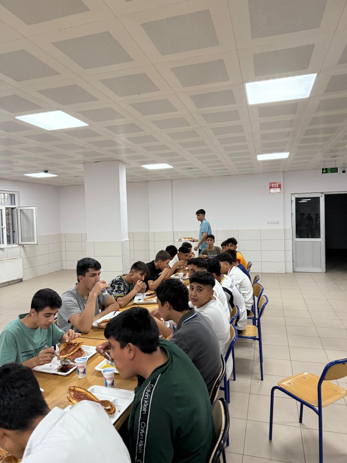 Akşam yemeğini öğrencilerle beraber yiyerek sohbet etti.