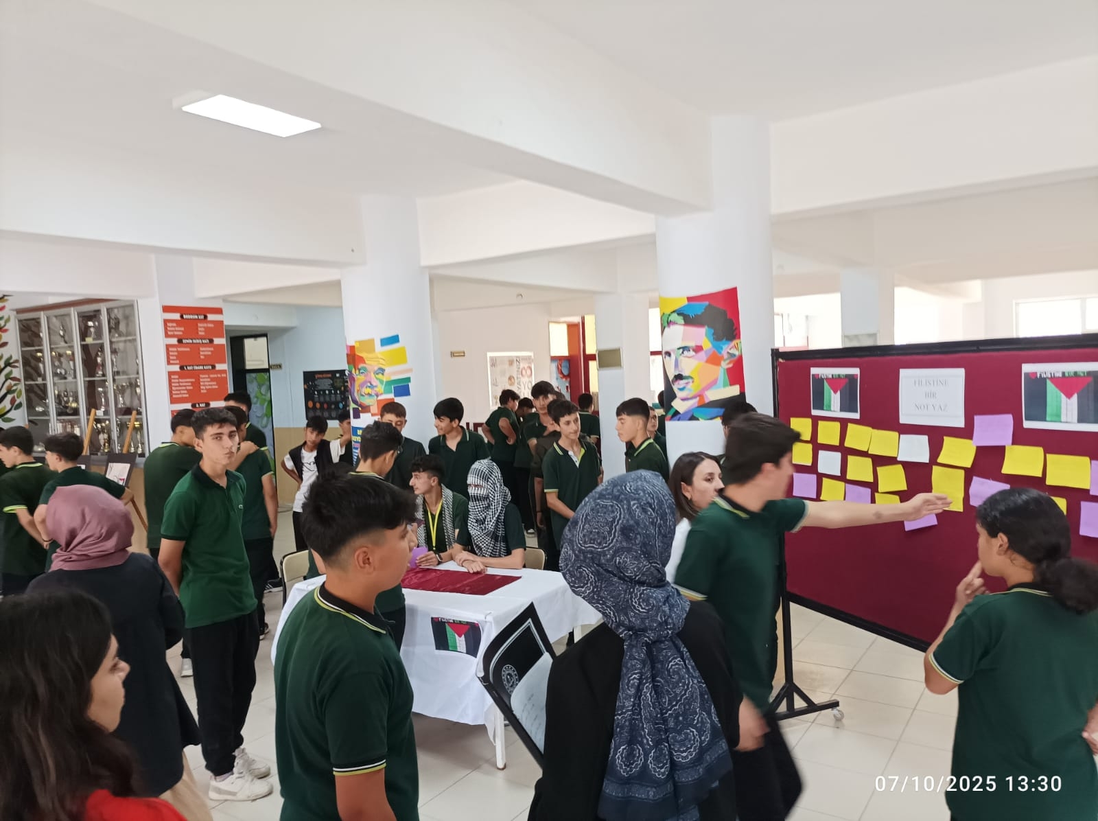 Etkinliklerde öğrencilerimiz; barış, kardeşlik, adalet ve insanlık değerleri üzerine farkındalık kazanırken, Filistin'de yaşanan insani dramı empatiyle anlamaya çalıştılar.